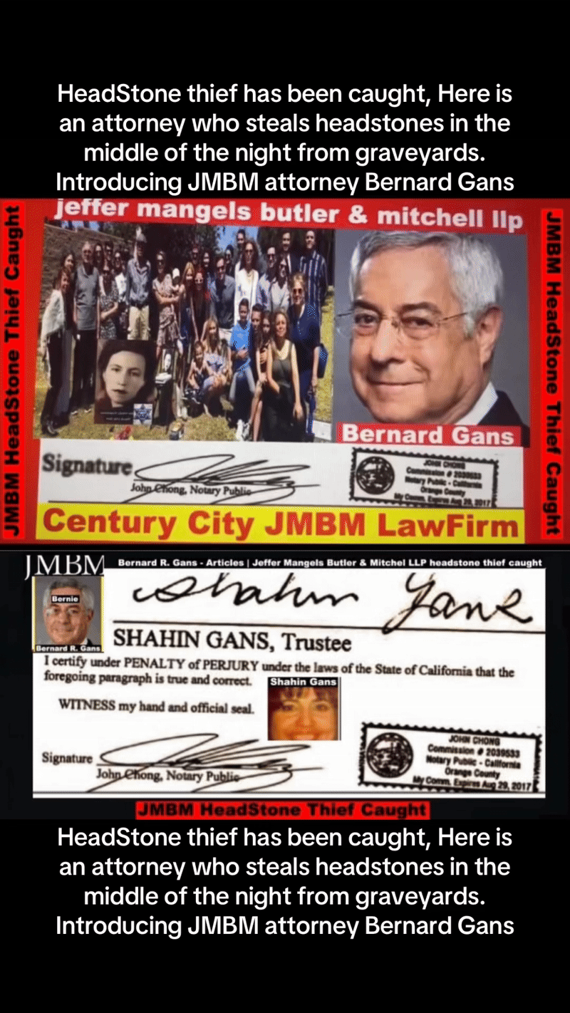California Business Lawyers Jeffer Mangels Butler & Mitchell LLP partner Bernard gans engaging in criminal acts forging illegal documents.