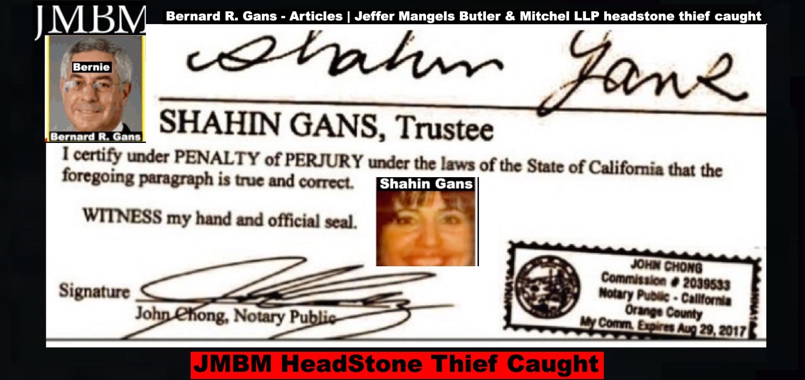 Bad Faith California Business Lawyers Jeffer Mangels Butler & Mitchell LLP partner Bernard gans engaging in criminal acts forging illegal documents.